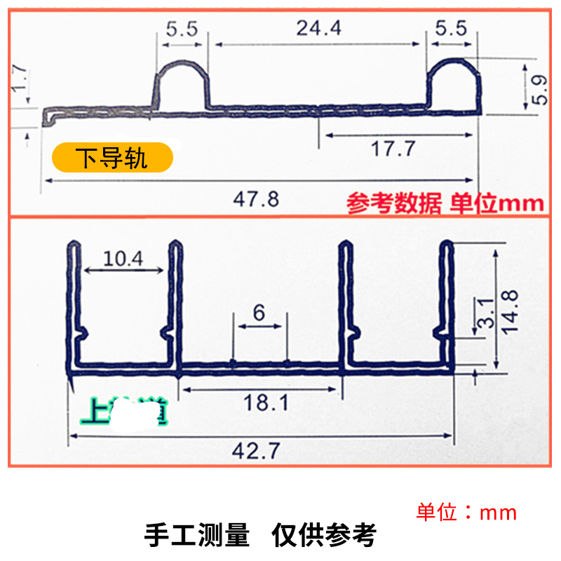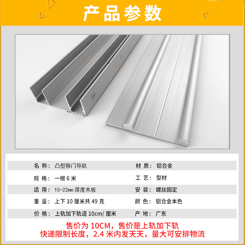 Free slotted thick sliding door Convex double track wardrobe sliding door guide Aluminum alloy chute integral cabinet sliding door slide