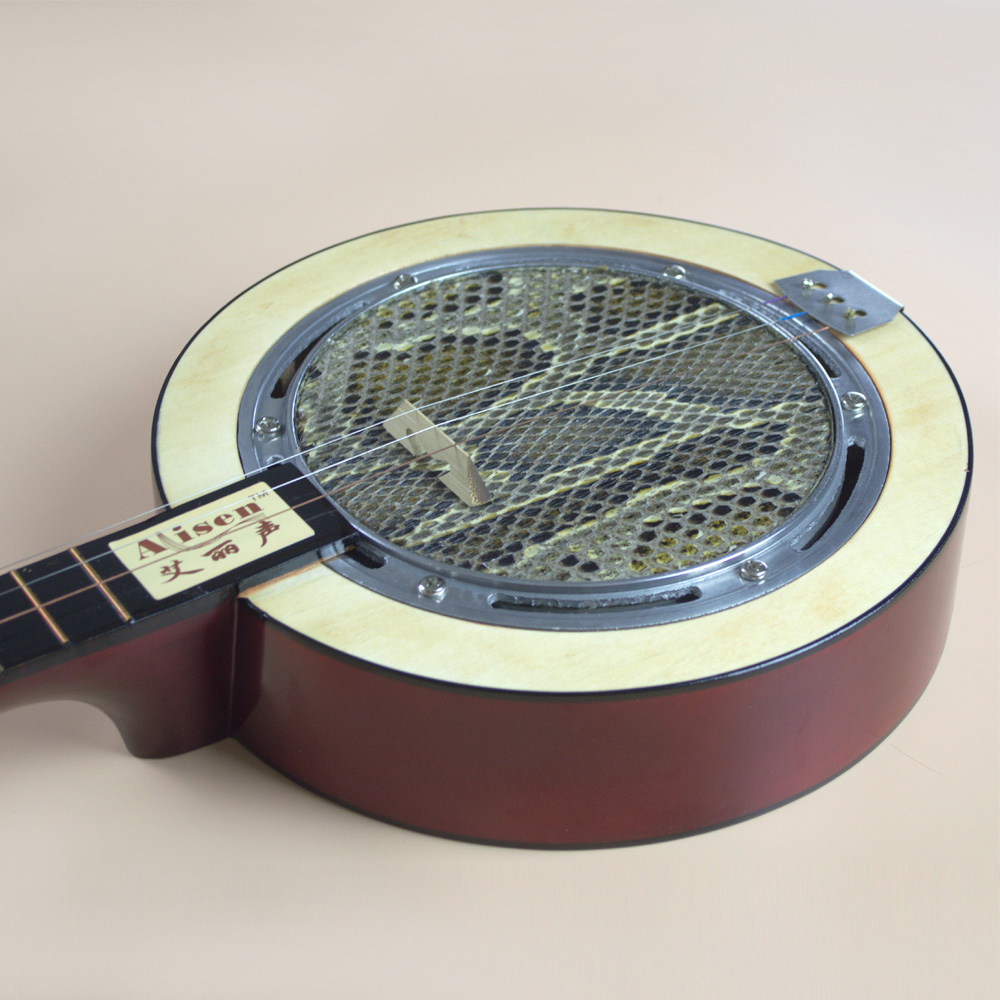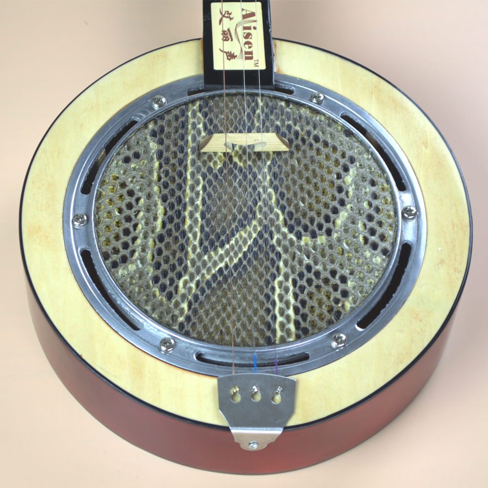 Alisheng Three-stringed Qinqin musical instrument Python skin round Qinqin Guangdong national plucked instrument Old man musical instrument
