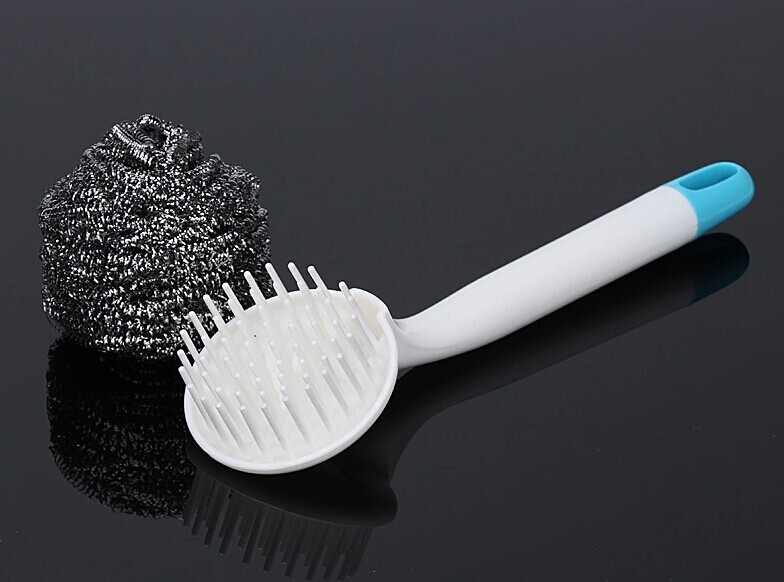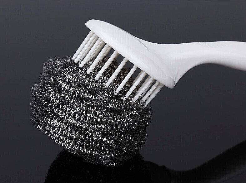 Japan KM kitchen wash pan descaling with stubborn stains steel wire ball with handle cleaning brush long handle pan brush