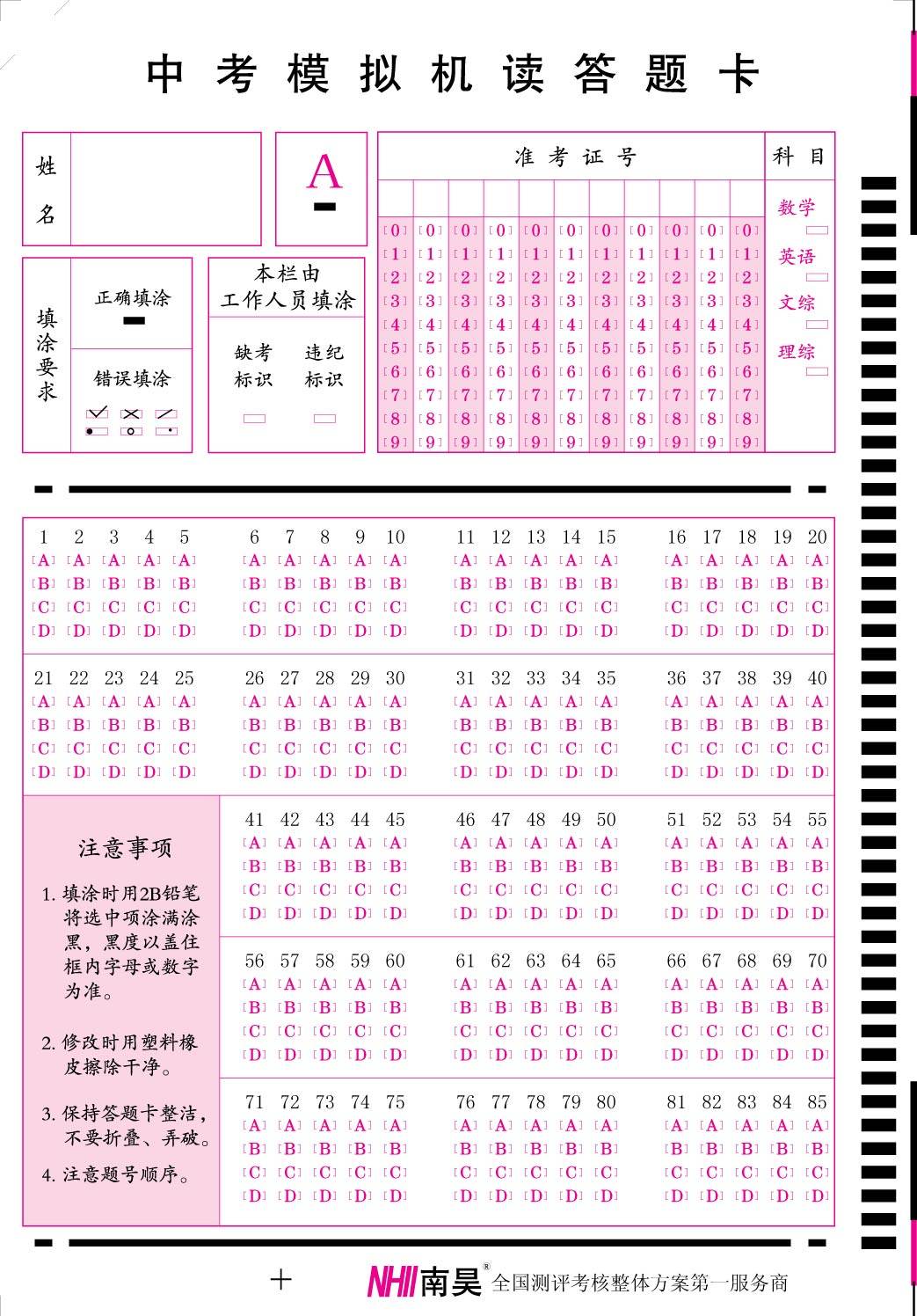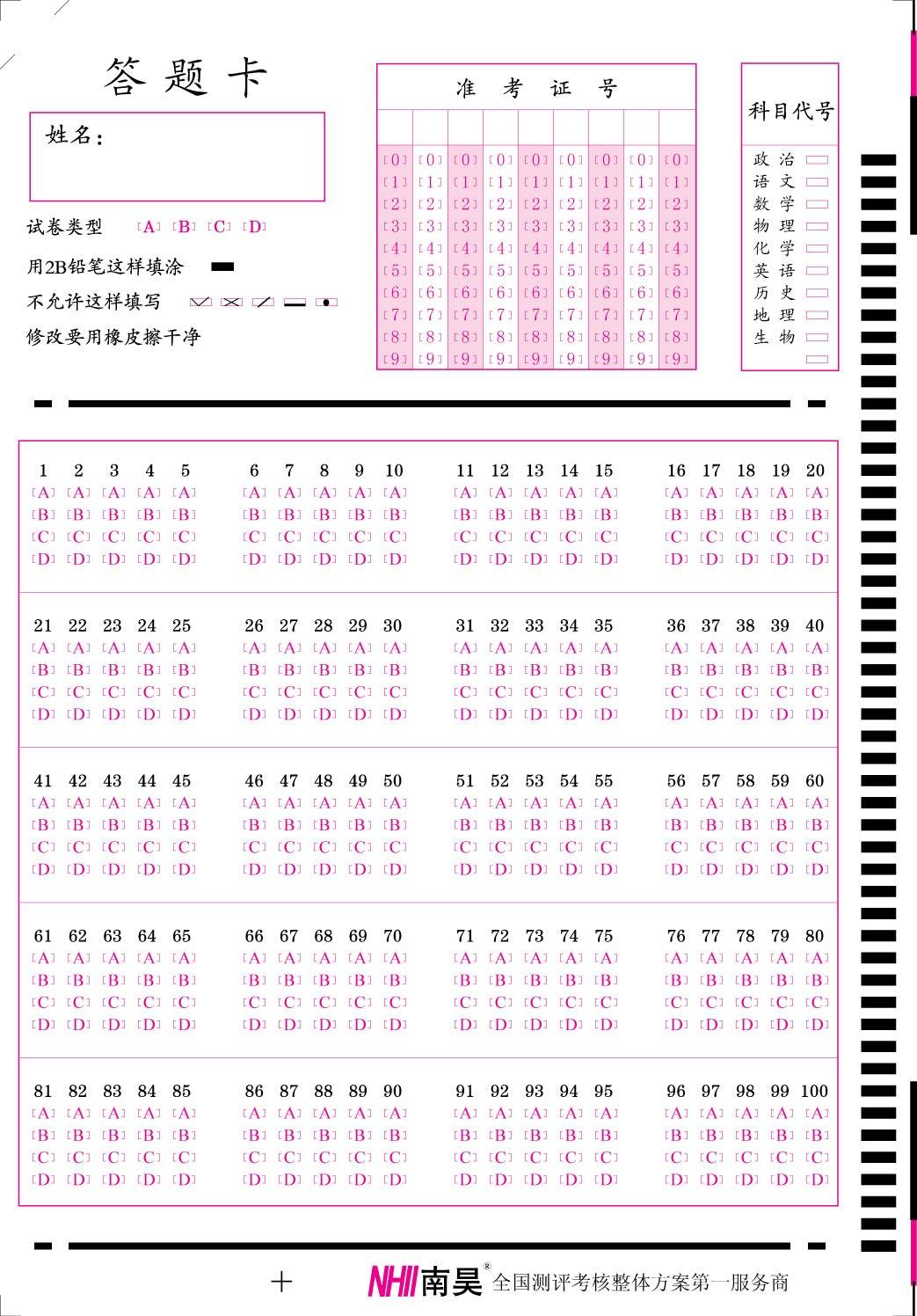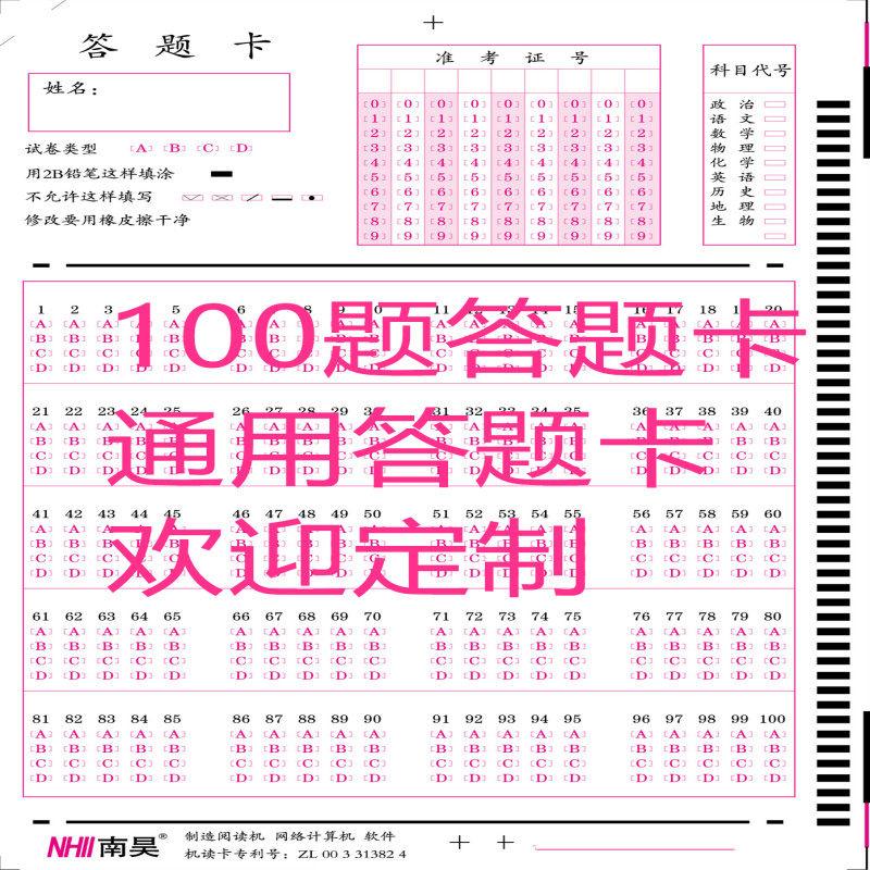 Middle-exam theory standard card reading machine examination answers card gaokao simulates civil service liberal arts comprehensive career customized answer card