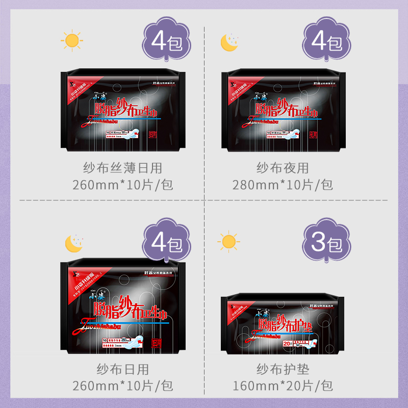 Xiaozi gauze sanitary napkin women's pad combination pack 15 packs mixed petty bourgeoisie full box cotton soft official website flagship store