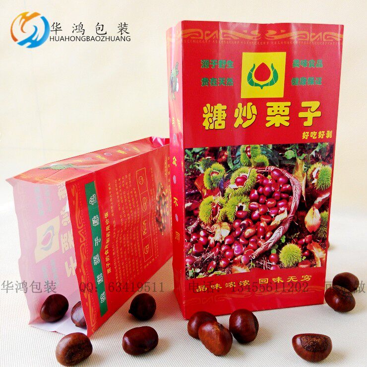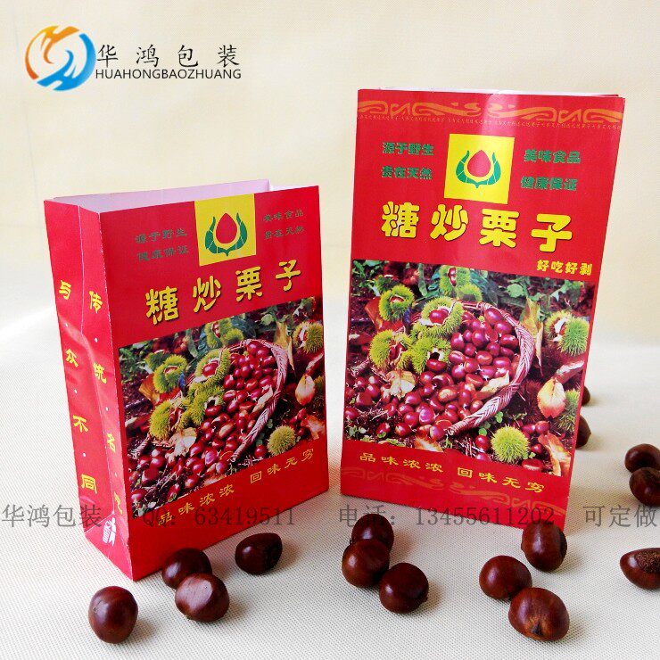 Sugar Fried Chestnuts Colorful Wrapping Paper Bag moving West Oil Chestnut Fried Chestnut Square Bottom Thickened Pack Bag can be set for 50