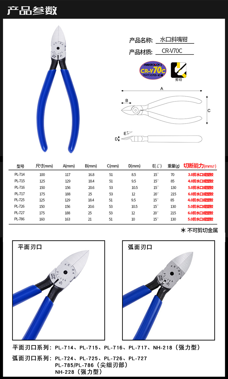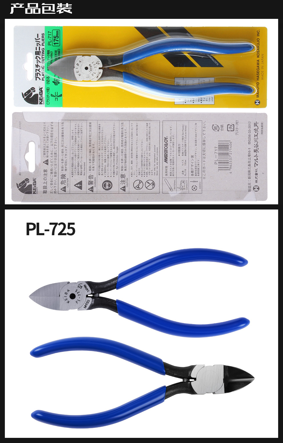 Japan Import Tool KEIBA Clippers model pliers PL-725 water gap pliers 5-inch diagonal-mouth pliers
