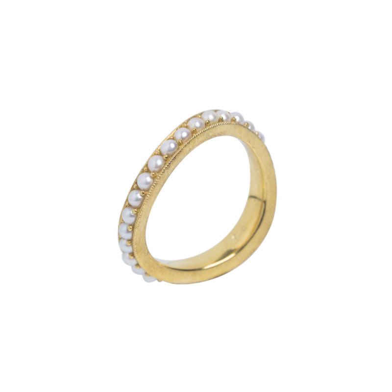 Stream Light Home Quality Pearl Strip Ring Ring Ring Natural 2mm Minimal Freshwater Pearl 925 Silver Inlay