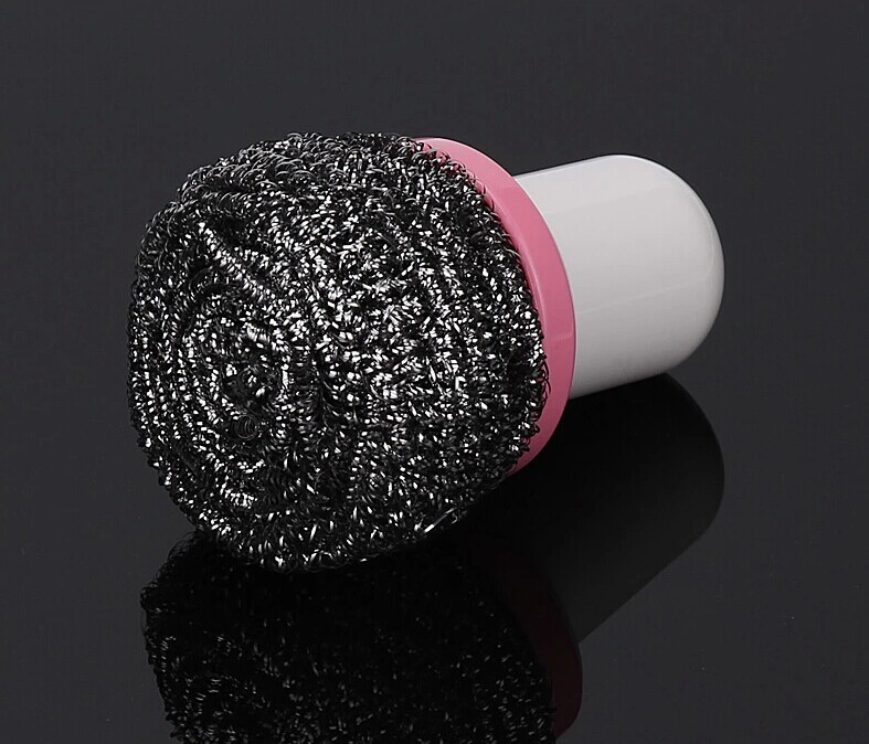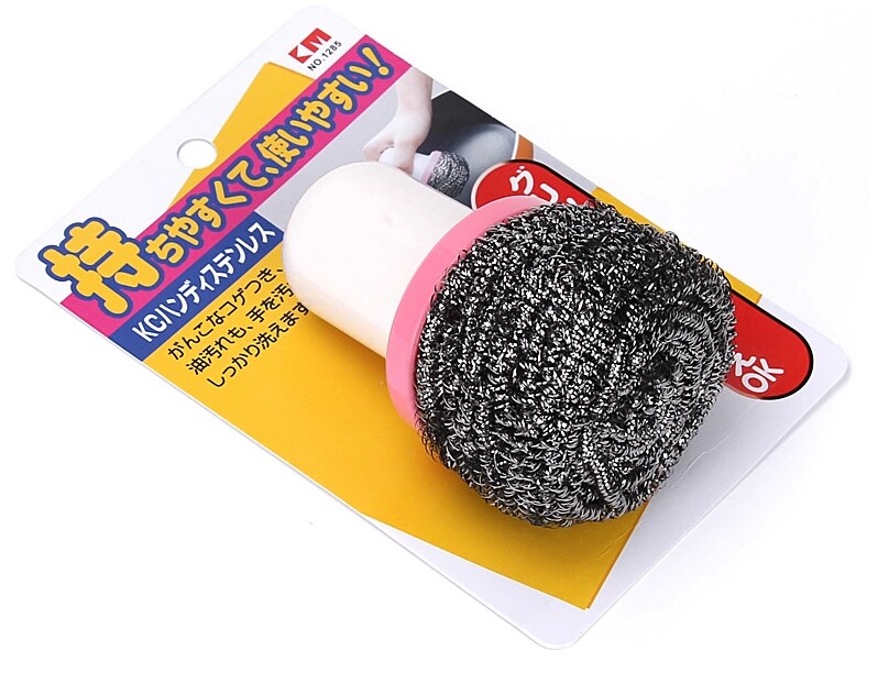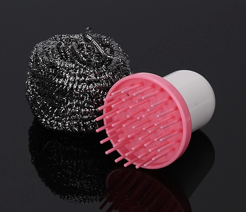 Japan KM not wet hand stainless steel wire ball except smudgling and descaling wire brush with handle dishwashing metal kitchen brush