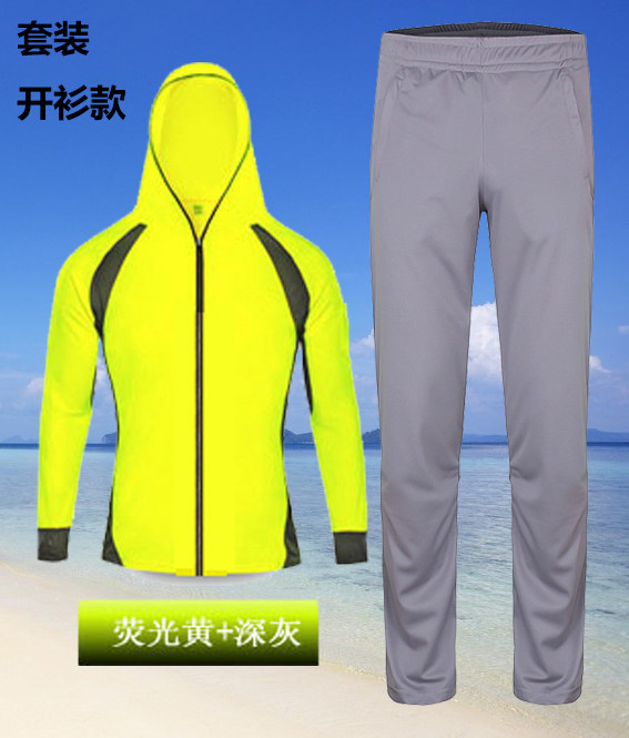 Fluorescent yellow cardigan-light gray and dark gray 30 suit-pullover fluorescent green pants 55 suit-pullover fluorescent yellow pants 55 pullover-white and dark gray 25 pullover-blue and light gray 2