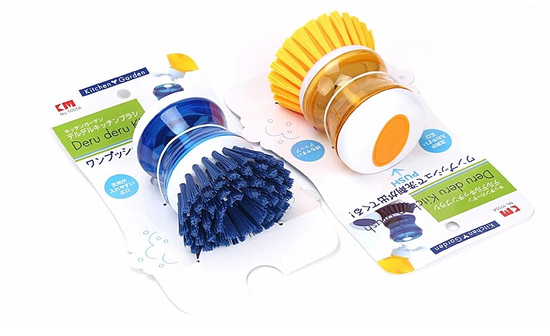 Japanese KM kitchen pot brush press type cleaner dish brush can be loaded with detergent dish brush housework cleaning brush