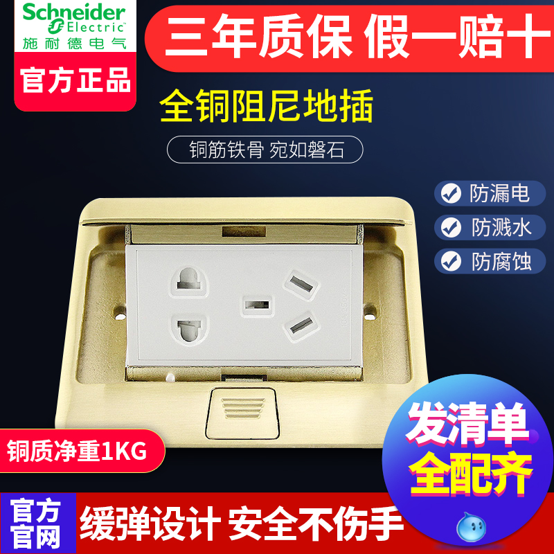 Schneider ground socket damping full copper waterproof anti-leakage invisible concealed 86-shaped five-hole ground floor computer ground plug-Taobao