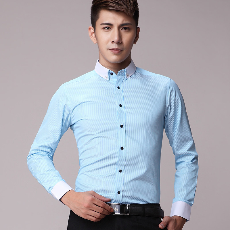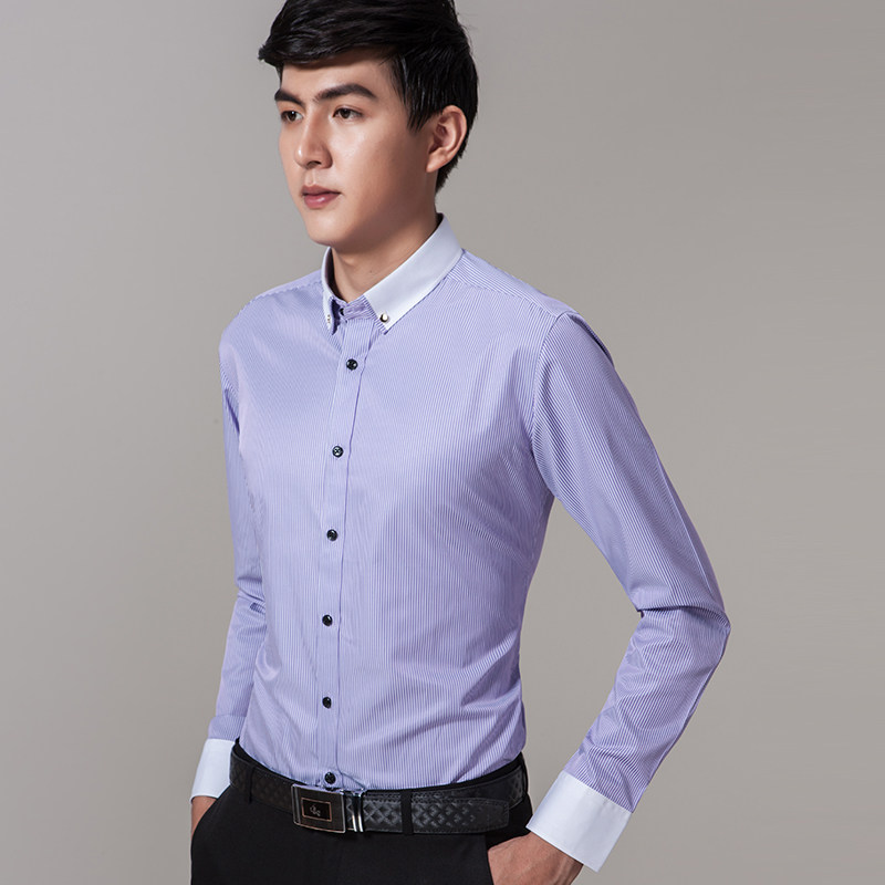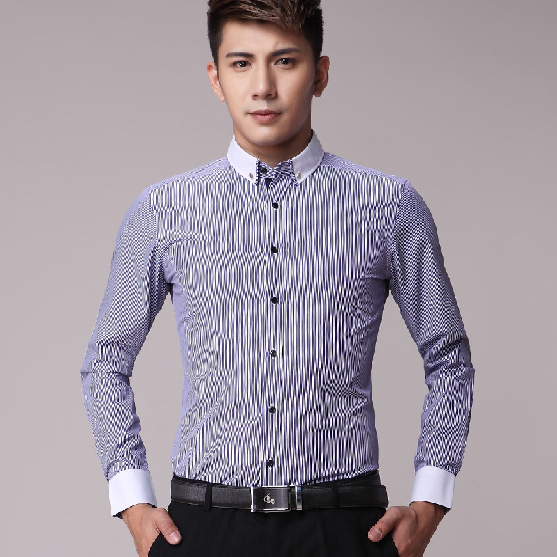 kaisidi striped men's long sleeve business gentleman Korean version inch body hit color collar fashion youth shirt tide