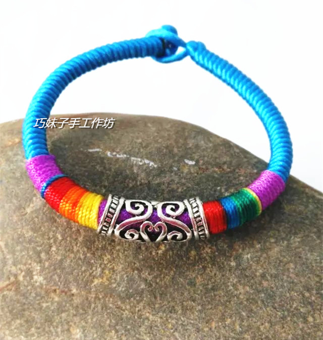 Ethnic Wind Retro Trinkets Bracelet Pure Handmade Color Line Woven Bracelet Bracelet Slim Silver Handbracelet Popular Bracelet Pop Bracelet-Taobao