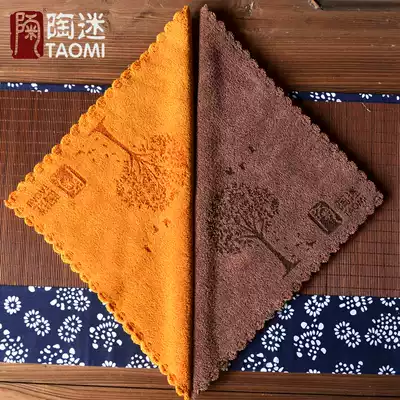 Pottery fan tea set accessories tea cloth absorbent tea towel thickened handmade towel pad rag Japanese wipe linen custom