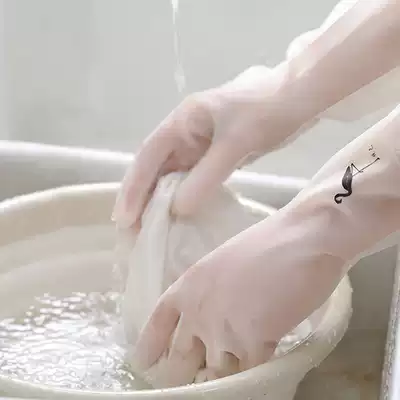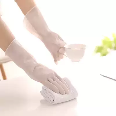 Durable kitchen washing gloves thin waterproof housework cleaning laundry gloves hand glue leather gloves female artifact