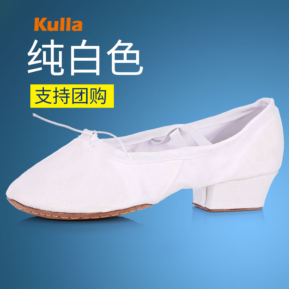 Adult white two-bottomed teacher's shoelaces with leather Latin practice shoes cloth soft-soled ballet shoes folk dance shoes