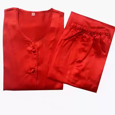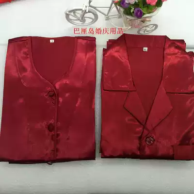 Hong Kong wedding supplies top pajamas set red V-collar simulation silk bride dragon and phoenix skirt