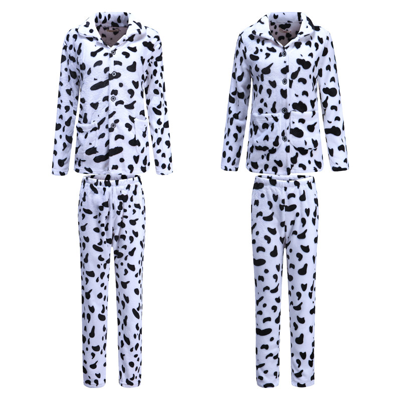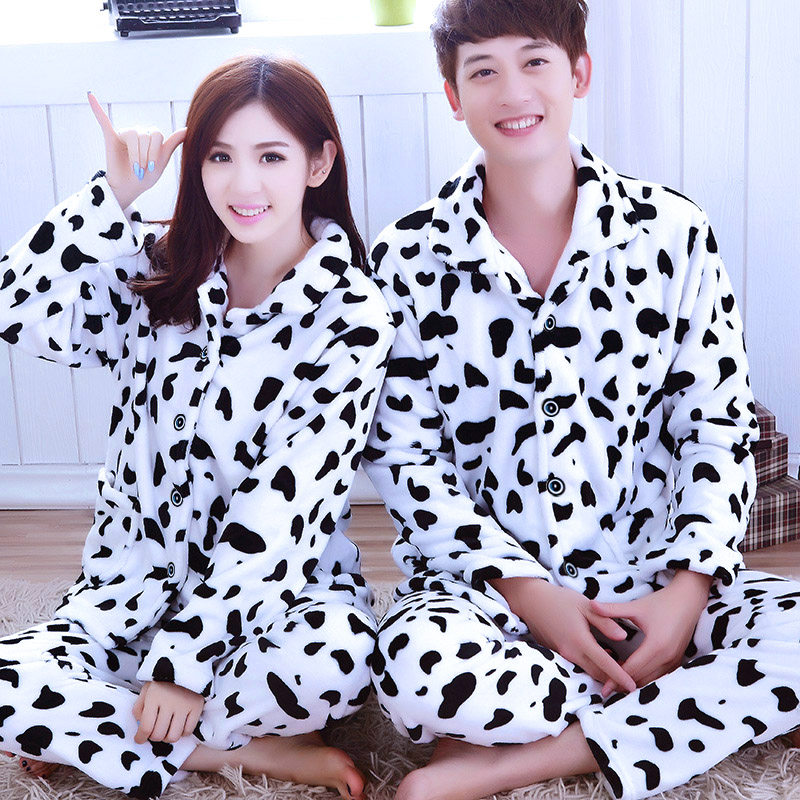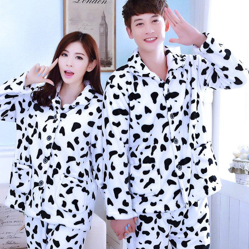 Autumn-winter cute cartoon thickened cow pajamas with animal flannel sleepwear long sleeve male and female flannel lovers pyjamas