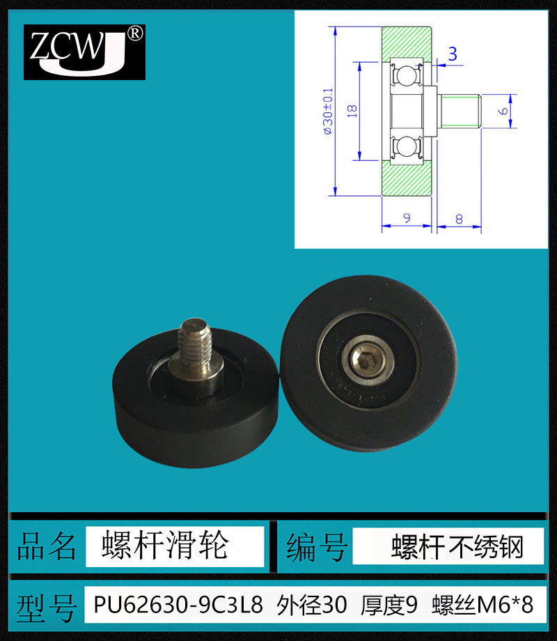 Rubber-coated bearing 626 roller roller plus screw diameter 30 Polyurethane bearing Rubber-coated wheel Machinery and equipment buffer