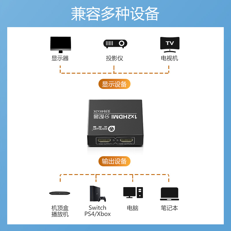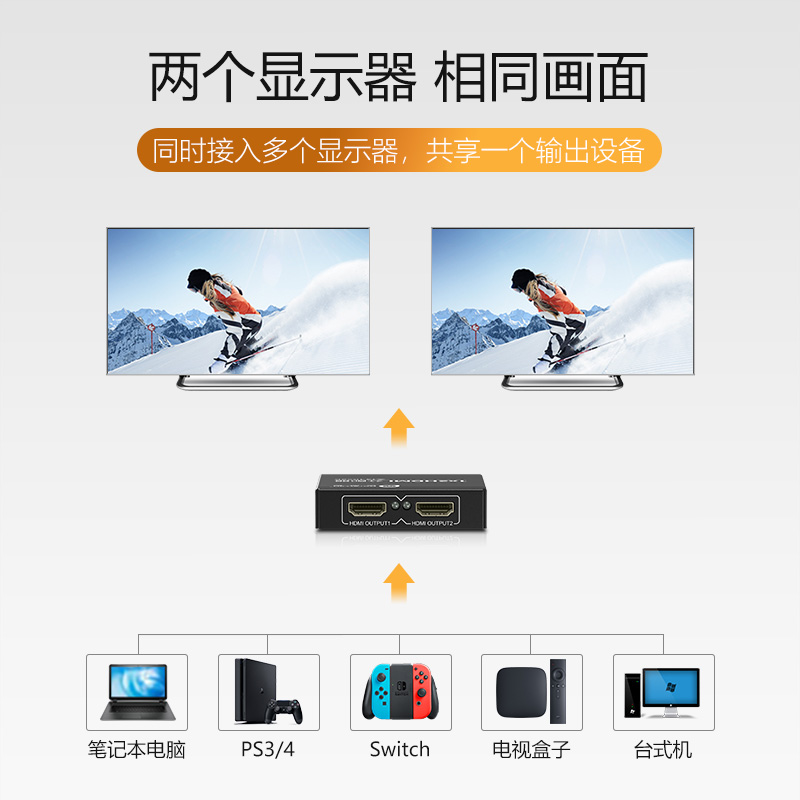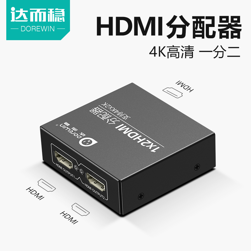 Da and stable HDMI one-point two splitter HD line splitter one in two out laptop display one drag two divider surveillance video TV multi-screen 4K converter HDML