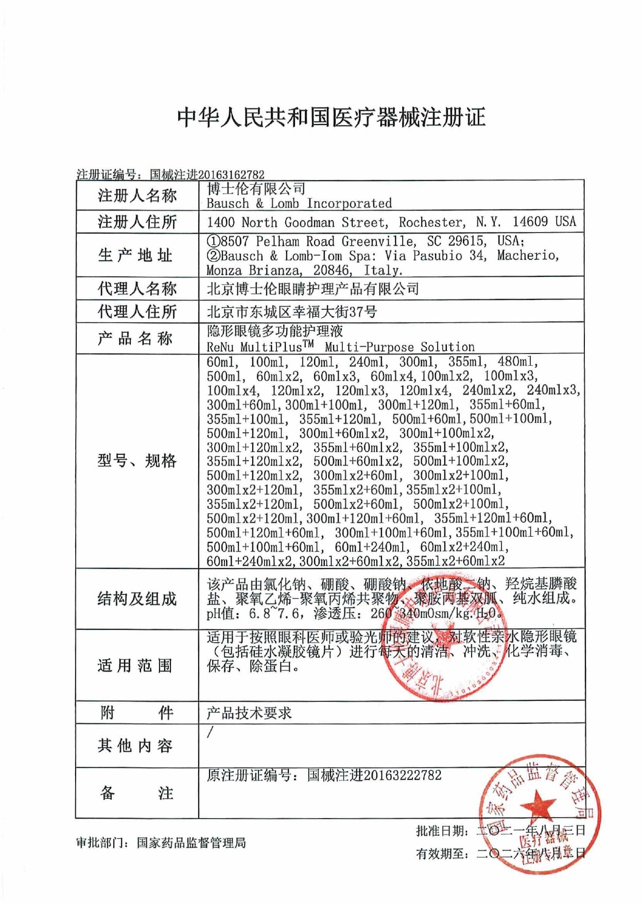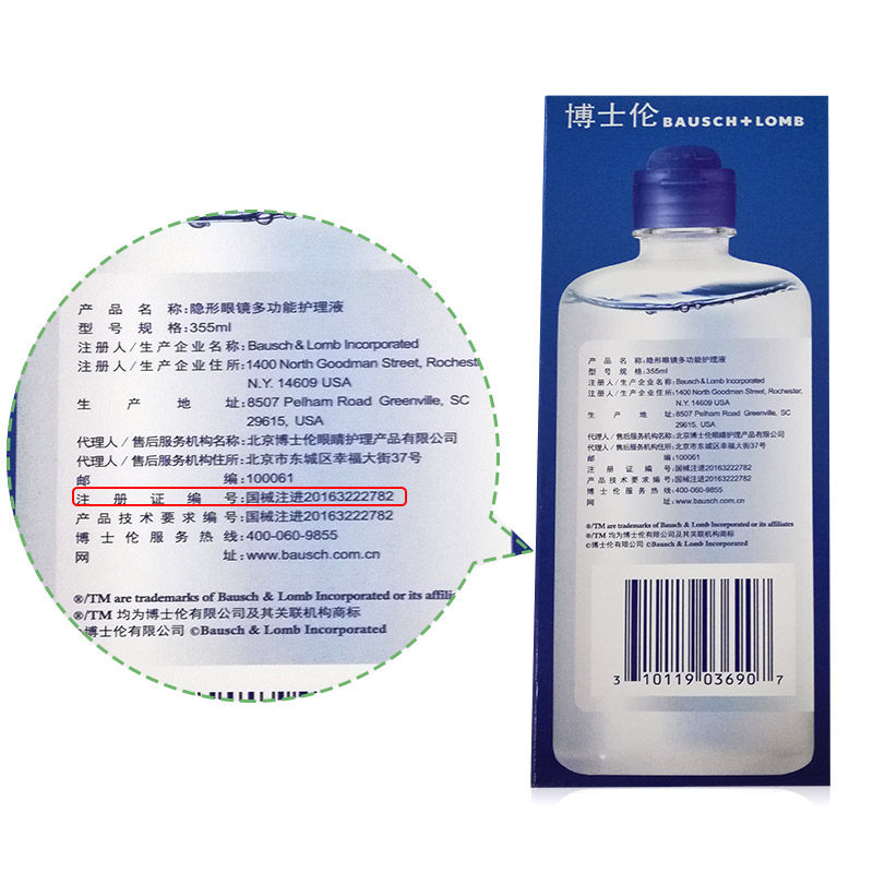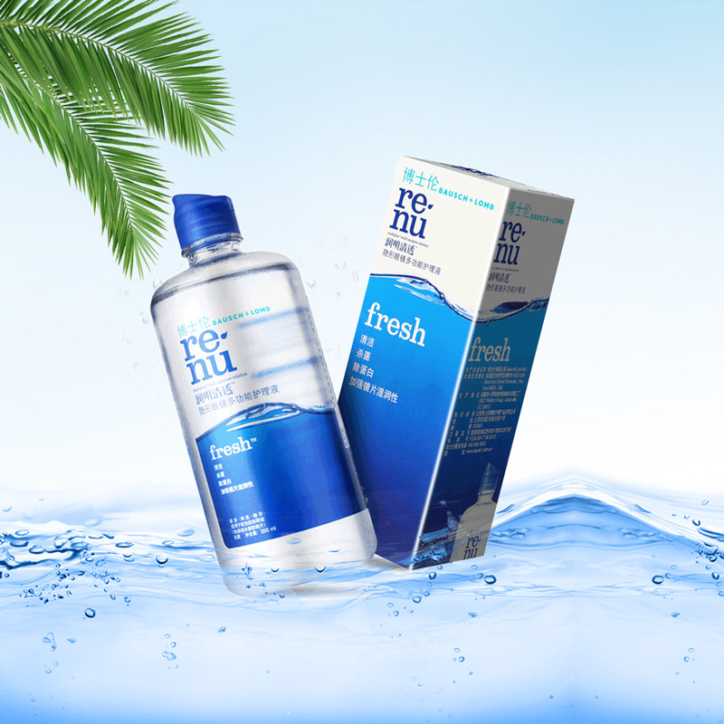 Attached box] Bausch & Lomb care solution moisturizing clear fresh contact myopia glasses 355ml beauty contact potion imported