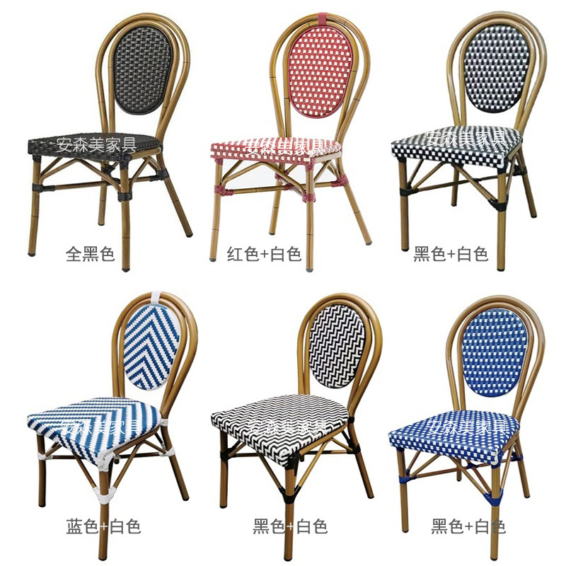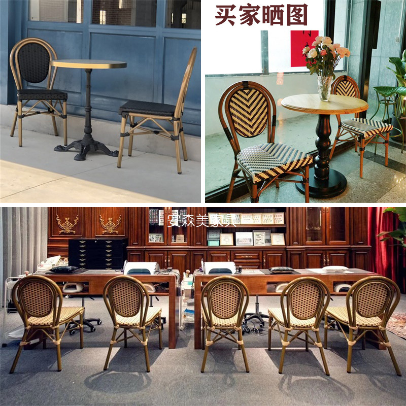 Eurostyle Bamboo Rattan Dining Chair Folk Sleeping balcony Leisure chair Milk Tea Shop Vine Chic Chairs Cafe high-end outdoor table and chairs K134
