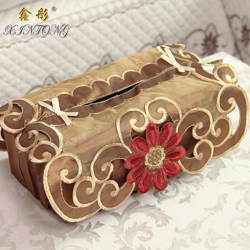 European-style pastoral embroidery fabric paper towel set car draw paper cover Creative cute tissue box set Xin Tong 0428