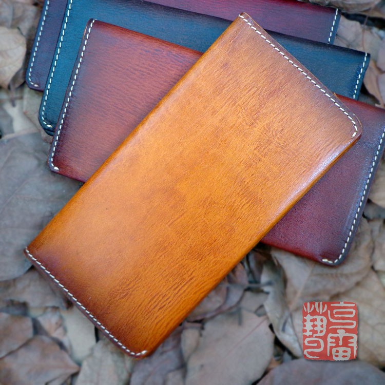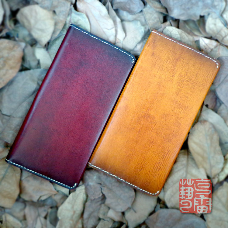 Minimalist style simple long casual wallet top layer vegetable tanned tree cream leather wallet Unisex handmade wallet
