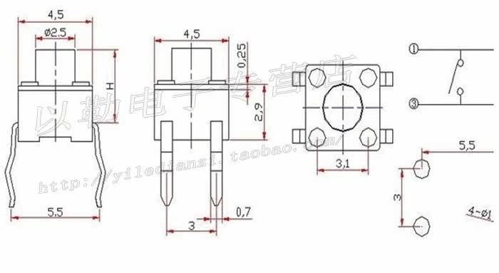 Temperature-resistant key switch 4 5*4 5*4 3H small micro switch imported stainless steel spring sheet light switch