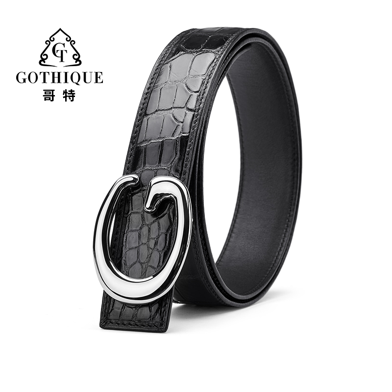 Gothic Import Crocodile Leather Strap Men Genuine Leather Upscale Pants With Fashion Tide Men Smooth Button Business Pants Belt
