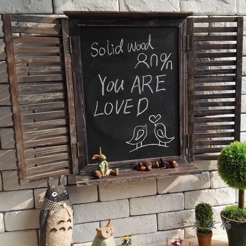 European pastoral American country retro bar coffee shop decoration Wooden blackboard wall decoration Wall decoration Fake window hanging decoration