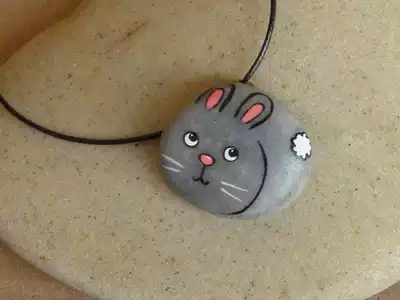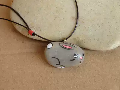 Hand-painted rabbit zodiac necklace pendant sweater refined stone fun tribe original hand-painted stone