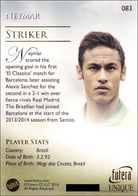 Fortela Futera 2014 star card 083 Ultra Thick Puka Neymar JR Neymar