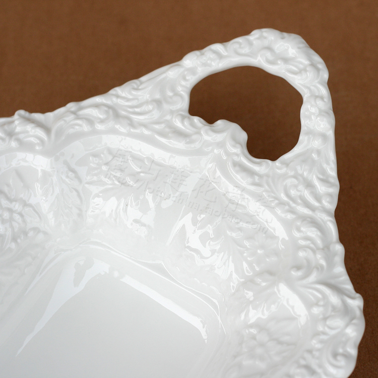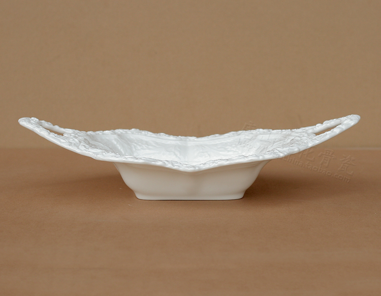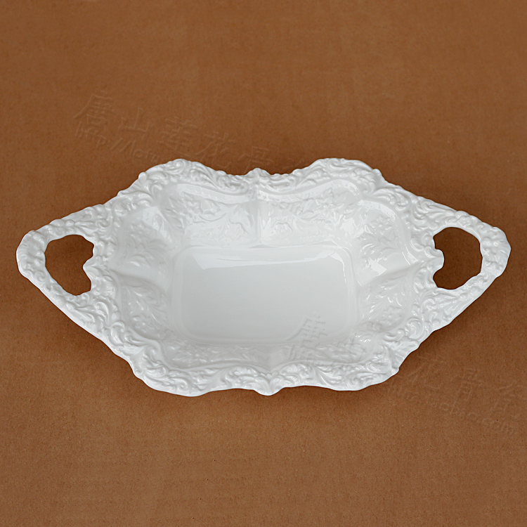 T Relief Double Ear Bowl Upscale Bone China Porcelain Fruit Plate Profiled Creative Eurostyle Classic Pure White Bone China