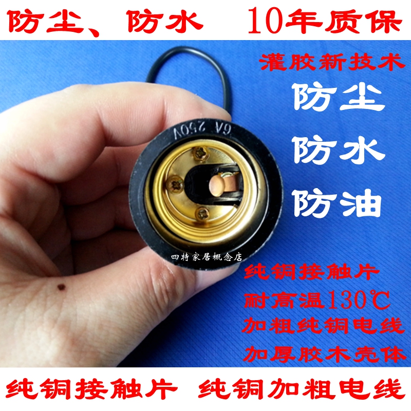 Advanced dust resistant waterproof lamp head pure copper E27 screw mouth LED light lamp holder high temperature resistant full seal lamp holder 6A