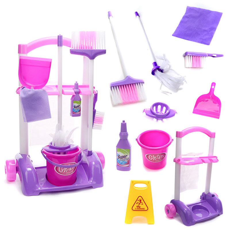 Children's broom dustpan Mopping set Mini cleaning trolley Baby play house wine kitchen girl toy set