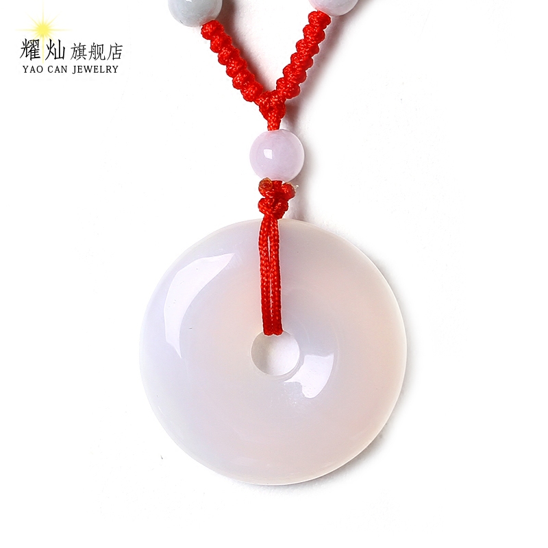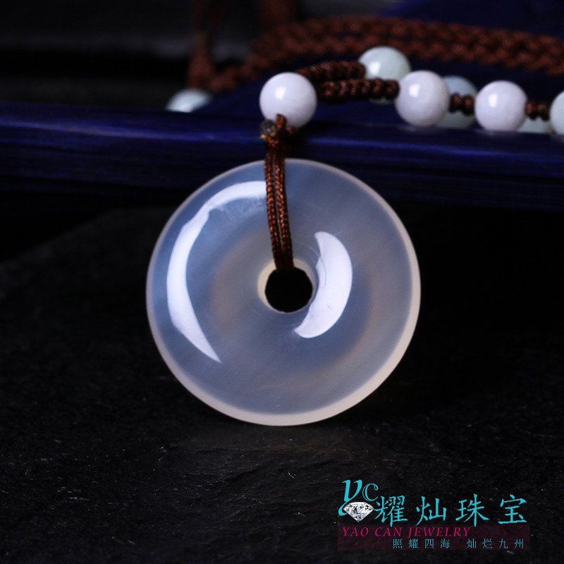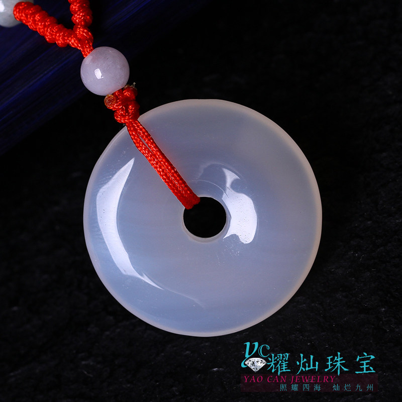 Yaocan white chalcedony safety buckle pendant White agate round pendant Crystal jewelry couple gift