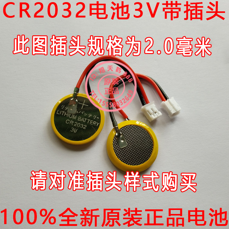 CR2032 3V button battery welding wire battery with plug pitch 2 0MM