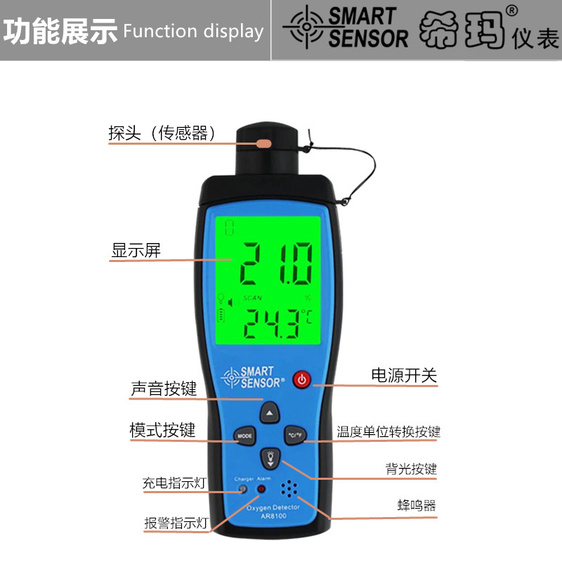 AC8100 (oxygen)imported monitor sound and light alarm lithium battery direct charge AR8100 (oxygen)sound and light alarm can be set value Lithium battery direct charge AS8901