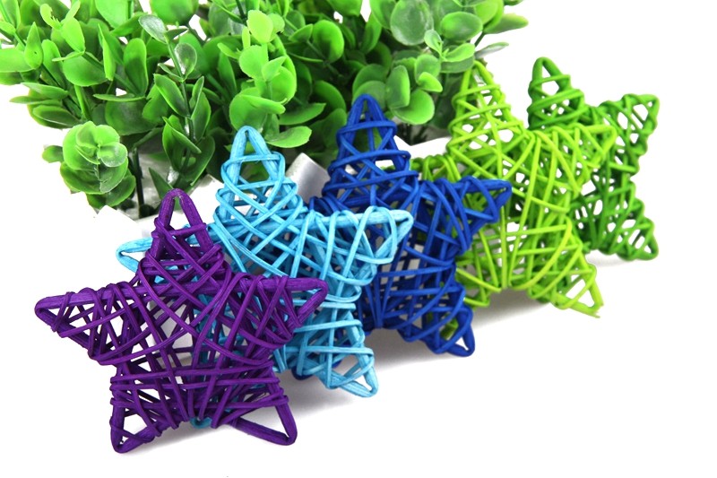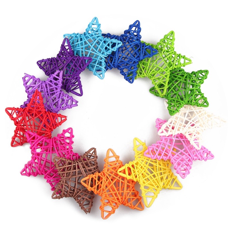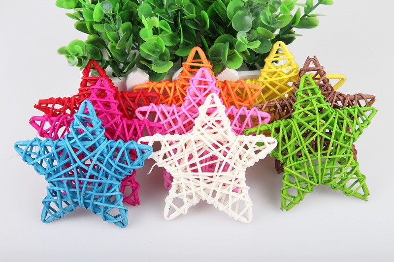 13CM Natural Rattan penned Pentagon Inserted Branches Colorful White Vines Jersey Christmas Tree Festival Decorated Golden Woven Stars Stick