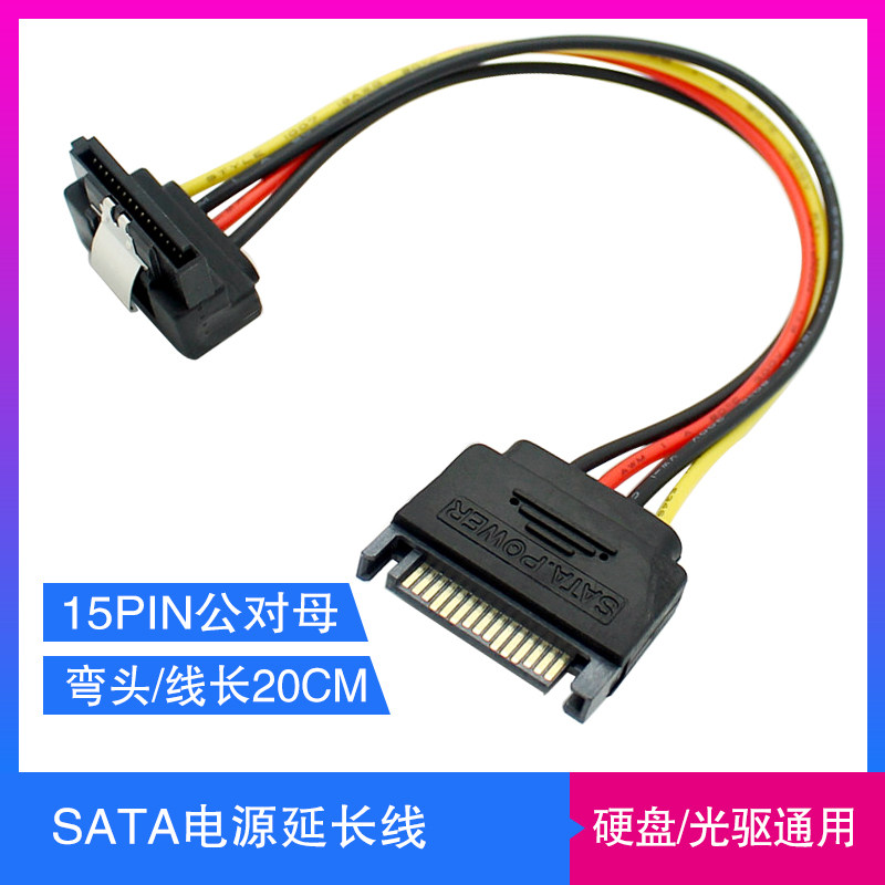 Elbow right angle 90 degree SATA power extension line SATA 15Pin serial power extension line 20CM