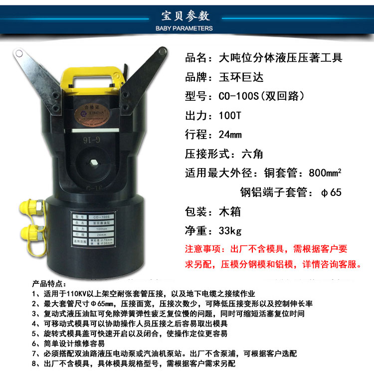 Wire crimping machine Large tonnage hydraulic pliers CO-60T100T200T separate hydraulic pliers imitation imported crimping machine