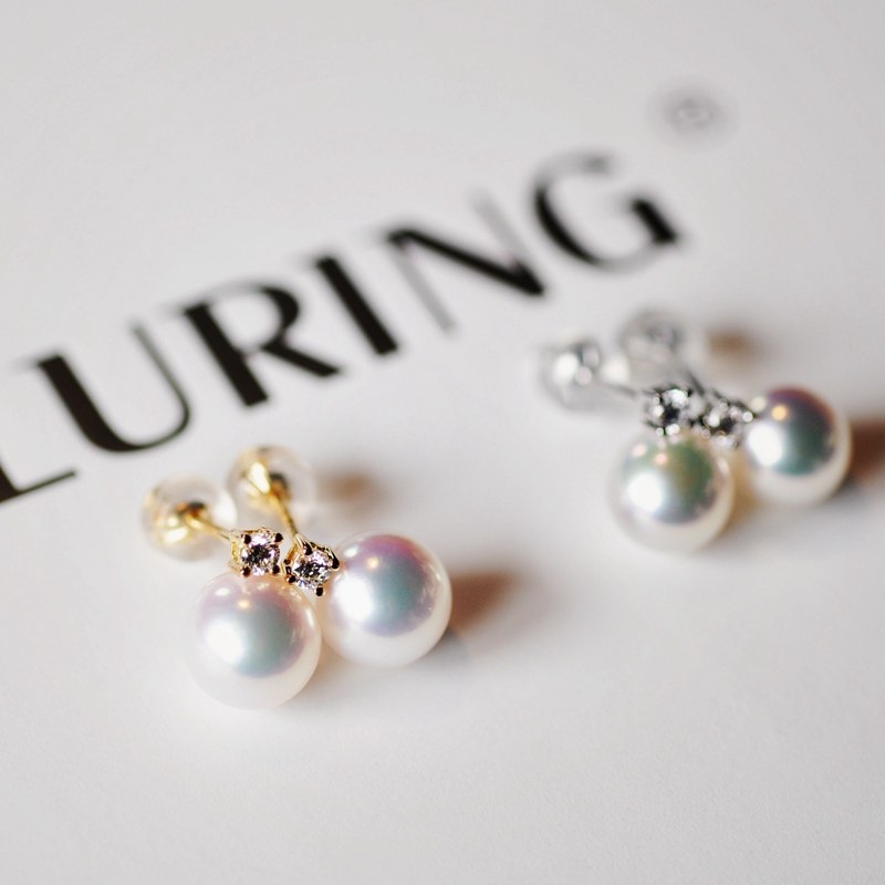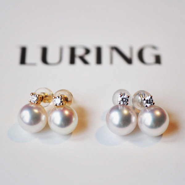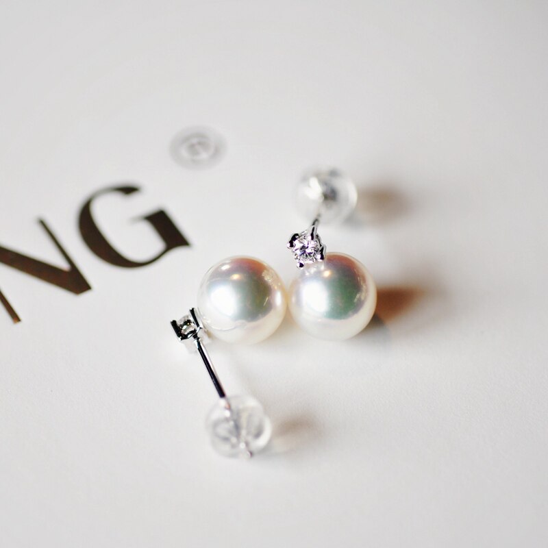 Princess high-end Japanese flower beads Akoya 12 points diamond◆Single diamond 18K gold natural pearl earrings