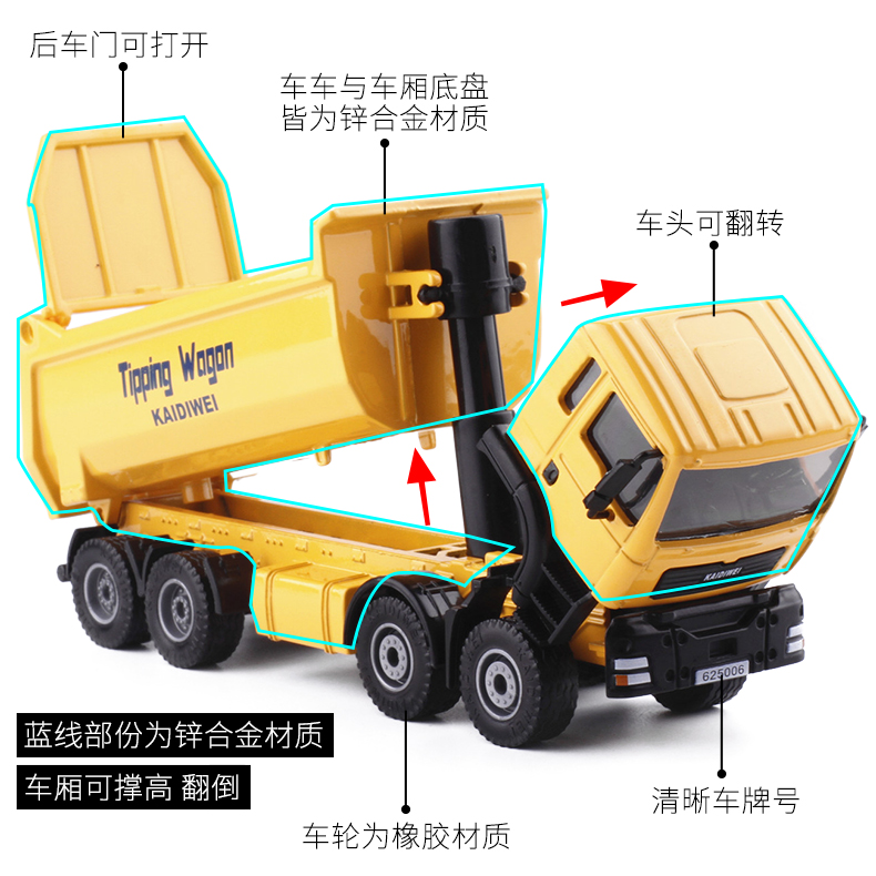Kaidiwei (full alloy large 8-wheel dump truck)Dump truck engineering vehicle Alloy car model toy