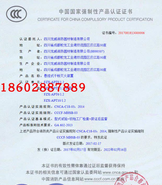 Electric control type 8kg*FZXA8 1 2 storage suspension type ultra fine dry powder fire extinguishing device*Chengdu fire protection equipment