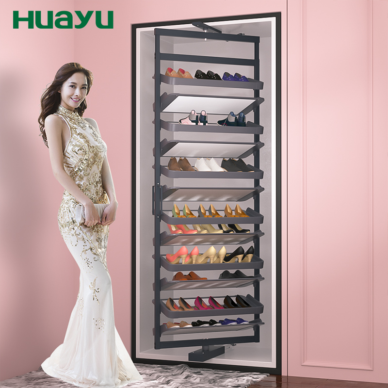 Painting Yu household cloakroom hardware wardrobe double-layer 360 degree rotating shoe rack multi-layer entrance shoe cabinet storage artifact