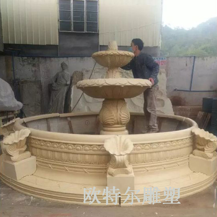 Large Fountain Spray Pool Landscape Landscaped Garden House Communal Fountain Spray Water Decorated Sandstone Sculpture Pendulum