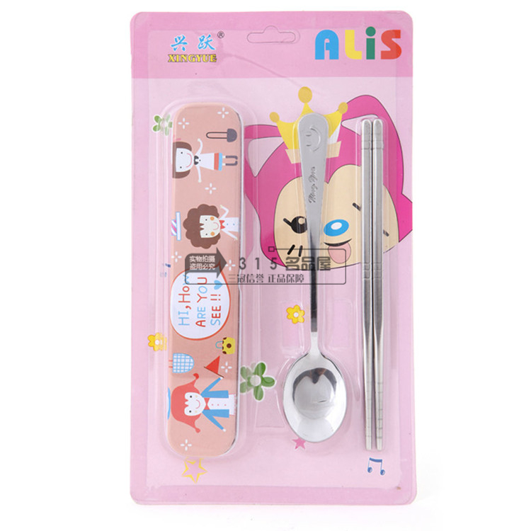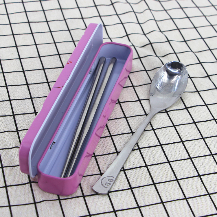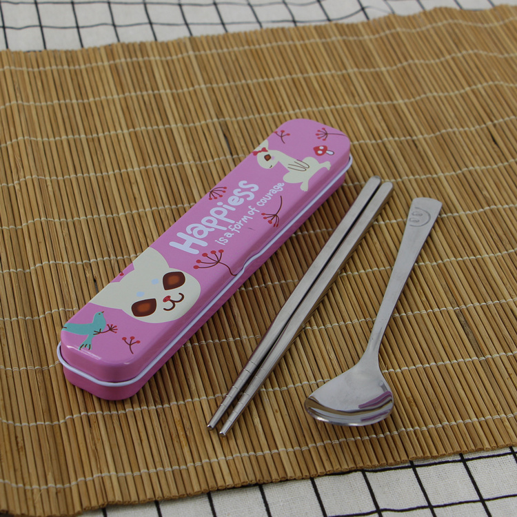 Cute mini stainless steel chopsticks spoon portable tableware kindergarten children primary school students canteen eating chopsticks spoon two pieces