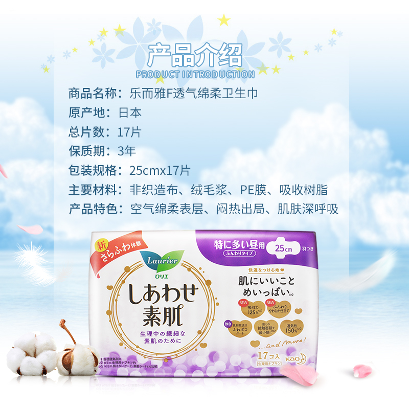 Japanese imported flowers Wang Leong and YF cotton soft and delicate daily protective wing sensitive muscle sanitary cotton 25cm17p