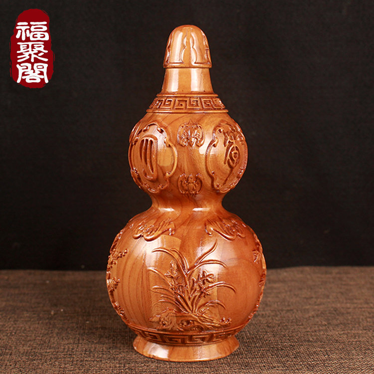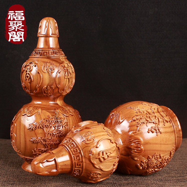 Zhengzong Hundred Fu Solid Gourd Pendulum Piece Home Fu Calligraphy Town Residence Living Room Wedding Gift Solid Wood Sculpture Craftsmanship Gift Hem