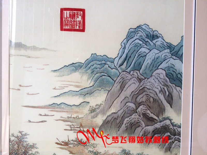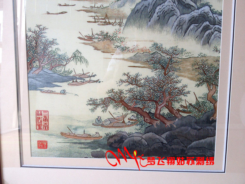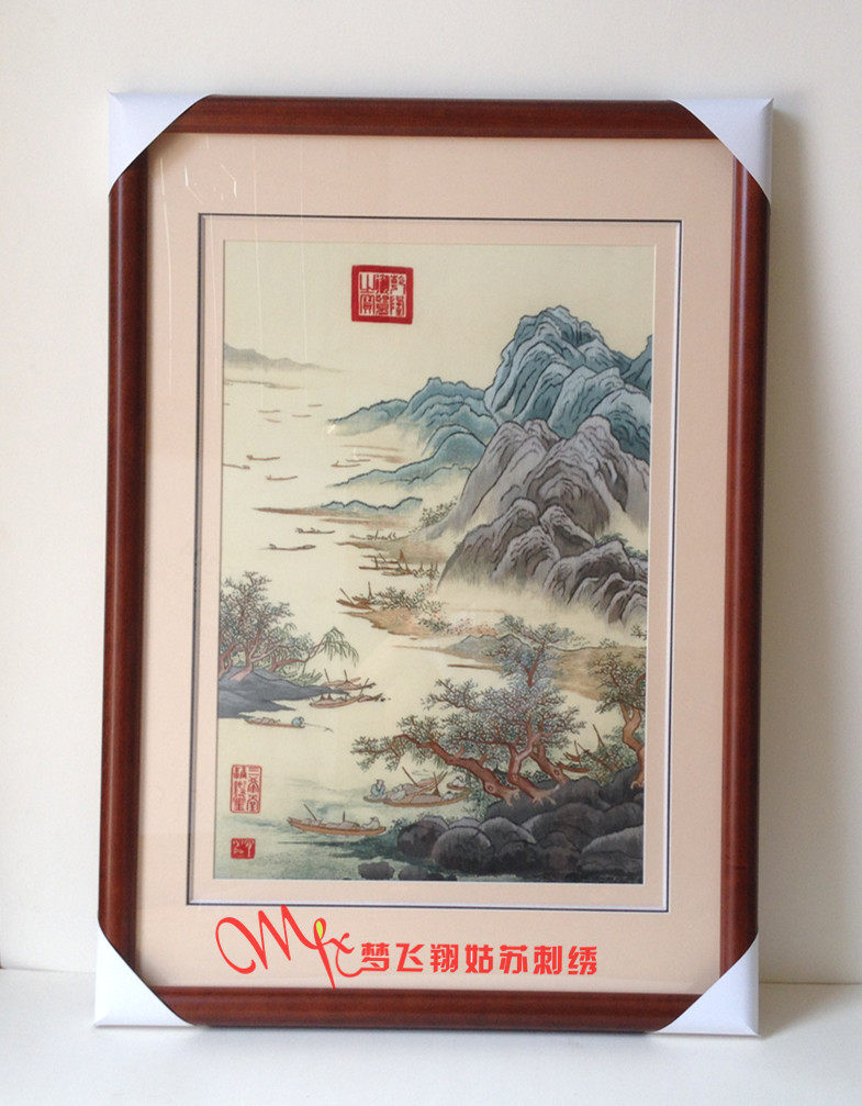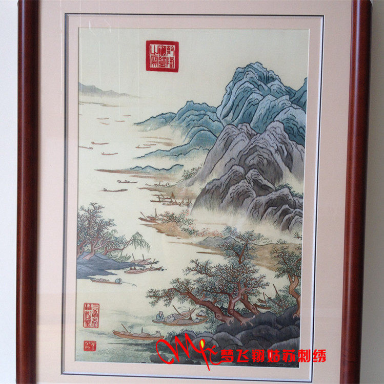 Tang Yin landscape embroidery Su embroidery hand-painted living room hanging painting landscape landscape painting Su embroidery bedroom porch study Su embroidery