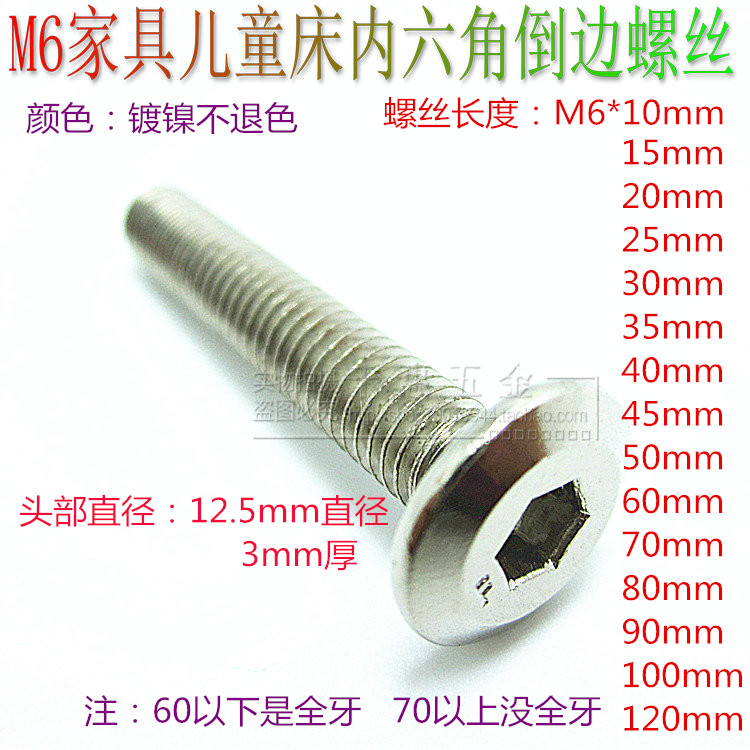 M6 machine furniture screws chamfered flat head hexagonal nickel-plated screws fastener screws crib screws