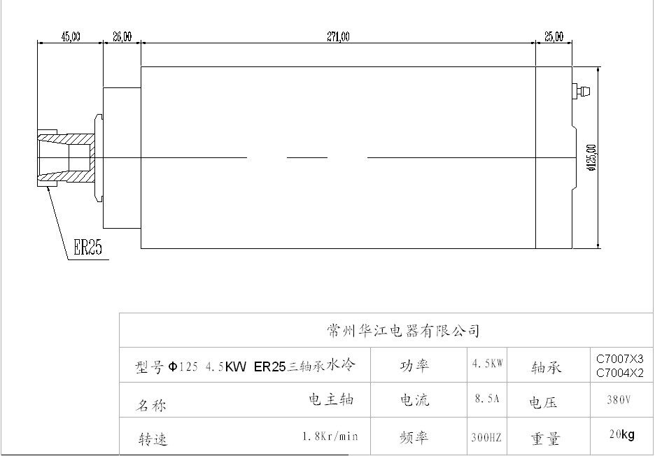 Huajiang water-cooled engraving machine spindle 5 bearings 125*4 5KW ER25 machine warranty one year bearing half a year